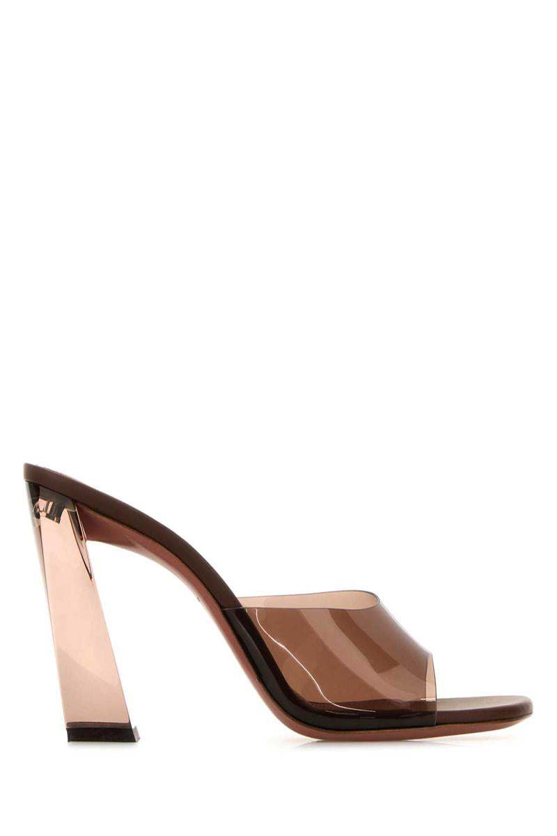 Brown PVC Brigitte mules Heel height: 9,5 cm