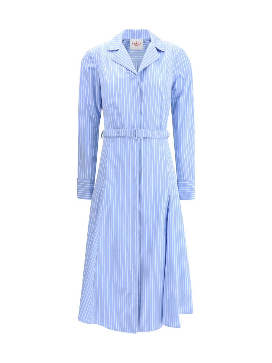 THE TARANTO CHEMISIER DRESS FROM CRIDA MILANO IS AN ELEGANT AND VERSATILE GARMENT PERFECT FOR A VARIETY OF OCCASIONS. ITS CLASSIC LAPEL CONSTRUCTION LENDS A TOUCH OF SOPHISTICATION, WHILE WELT POCKETS ADD PRACTICALITY WITHOUT COMPROMISING STYLE. THE MATCHING ADJUSTABLE AND REMOVABLE BELT ALLOWS YOU TO CUSTOMIZE THE FIT AND ACCENTUATE THE SILHOUETTE. THE SLIGHTLY FLARED WEDGE SKIRT GIVES A FLUID AND DYNAMIC MOVEMENT, IDEAL FOR THOSE SEEKING A SOPHISTICATED YET COMFORTABLE LOOK. FINALLY, THE STRIPED PATTERN MAKES THE DRESS MODERN AND VERSATILE, SUITABLE FOR BOTH FORMAL AND MORE CASUAL SETTINGS.