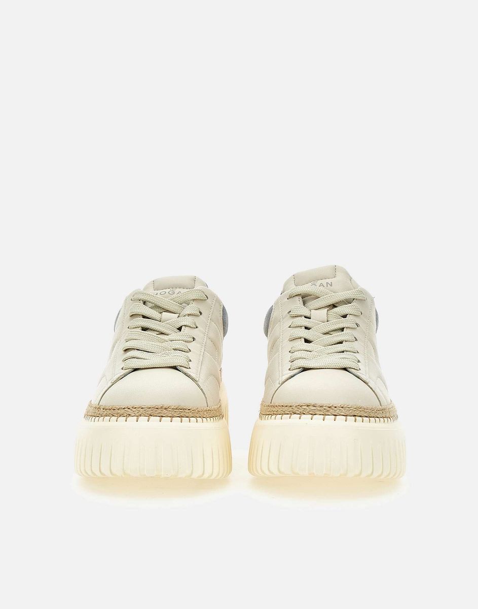 Crafted from premium nappa leather with suede leather accents, this product features a distinctive lateral H design. The EVA sole is designed with a rope profile, ensuring both style and comfort. Made in Italy, it comes in a classic white hue. The material composition includes 80% polyamide and 20% elastane.